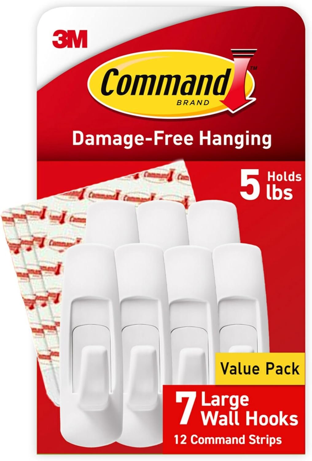 Easily organize your space with Command 5 lb Large Utility Hooks by the Command Store, featuring seven durable wall hooks and 12 adhesive strips for damage-free hanging. Each hook supports up to 5 pounds and can be used on a range of smooth surfaces, from painted walls to glass and metal, without leaving holes or sticky residue. Perfect for home, kitchen, or office organization, these hooks require no tools and are simple to reposition as needed. Upgrade your storage solutions and keep your walls pristine with these versatile and reliable adhesive hooks.
